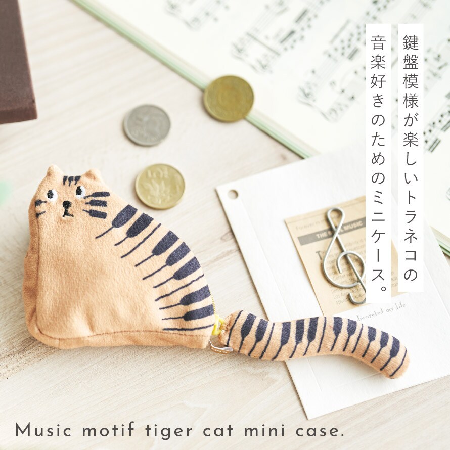 鍵盤模様が楽しいトラネコの、音楽好きのためのミニケース。