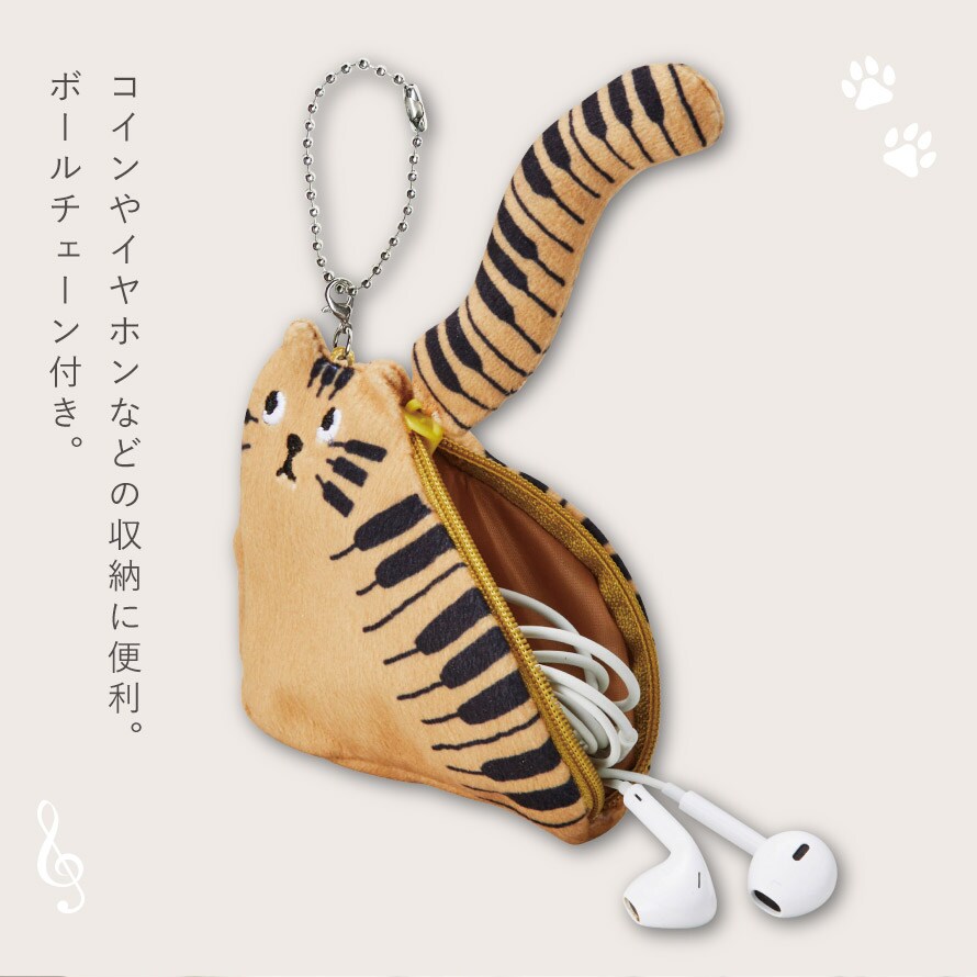 コインやイヤホンなどの収納に便利。ボールチェーン付きなので、カバンなどにつけて一緒にお出かけできます。