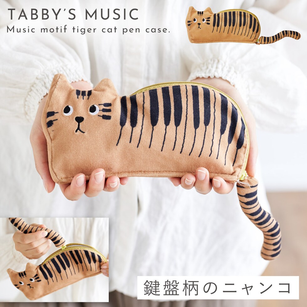 ピアノ モチーフ 雑貨 ペンケース 筆箱 猫 グッズ ピアノ発表会 記念品 プレゼント 猫好き 音楽 習い事 かわいい TABBYS MUSIC ペンケース