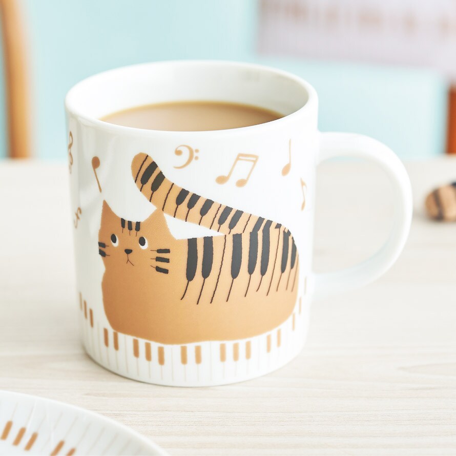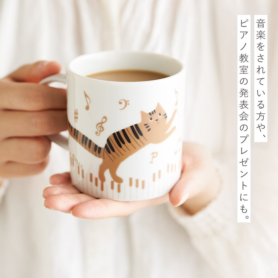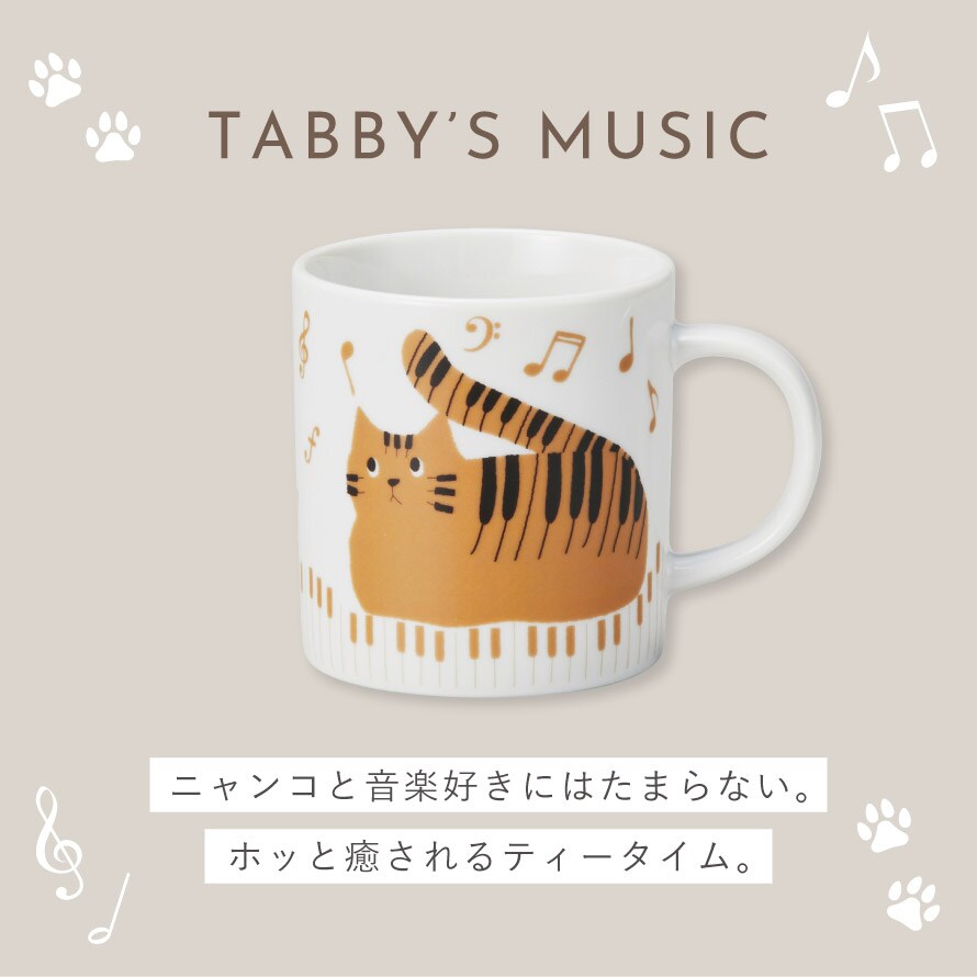 ピアノ モチーフ 雑貨 マグカップ 猫 グッズ ピアノ発表会 記念品 プレゼント 猫好き 音楽 習い事 かわいい TABBYS MUSIC マグ