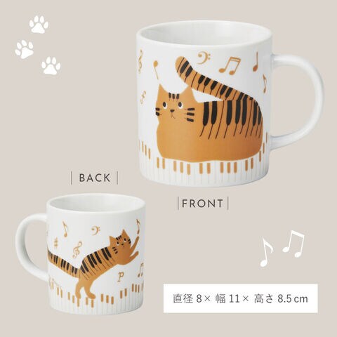 ピアノ モチーフ 雑貨 マグカップ 猫 グッズ ピアノ発表会 記念品 プレゼント 猫好き 音楽 習い事 かわいい TABBYS MUSIC マグ