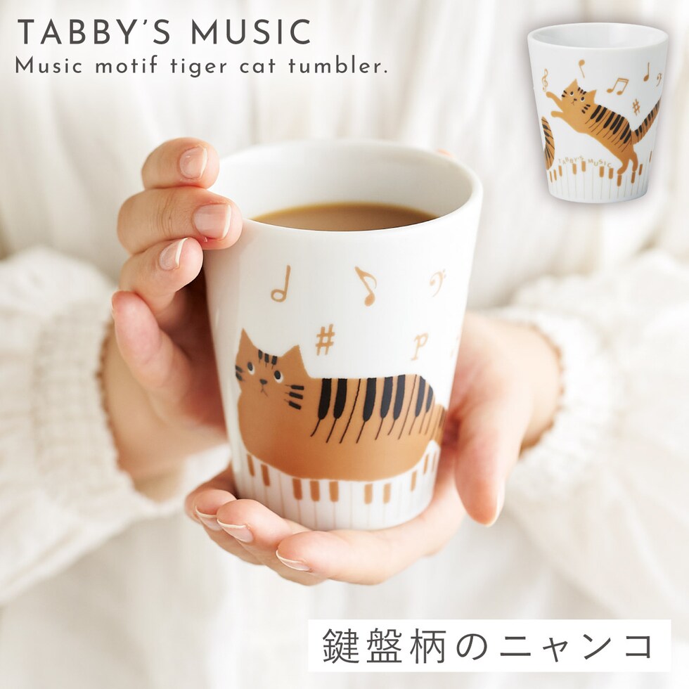 ピアノ モチーフ 雑貨 タンブラー コップ 猫 グッズ ピアノ発表会 記念品 プレゼント 猫好き 音楽 習い事 かわいい TABBYS MUSIC タンブラー