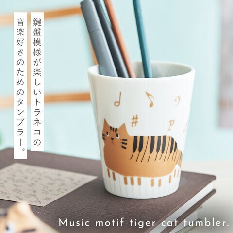 ピアノ モチーフ 雑貨 タンブラー コップ 猫 グッズ ピアノ発表会 記念品 プレゼント 猫好き 音楽 習い事 かわいい TABBYS MUSIC タンブラー