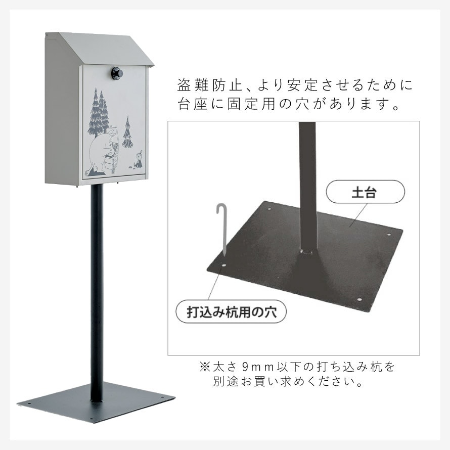 ムーミン ポスト 北欧 置き型 スタンド スタンドポスト 鍵付き おしゃれ ダイヤル式 スタンド付き 壁掛けポスト&ポスト用スタンドセット ムーミン