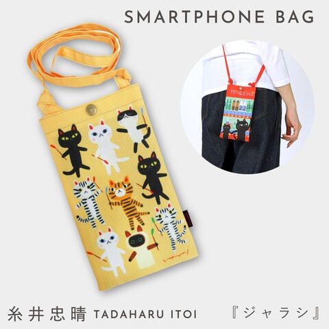 人気作家 糸井忠晴が描く、独特のタッチと温かみあふれる猫たちを、愛らしいスマショルダーバッグにしました。