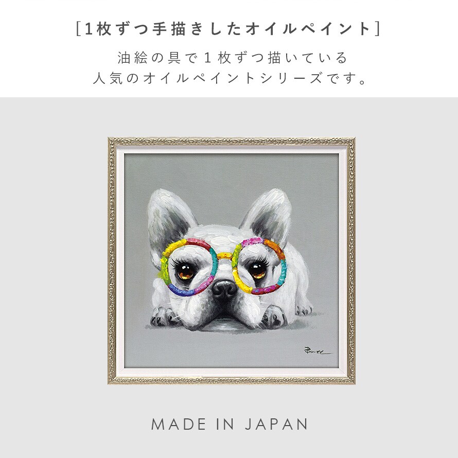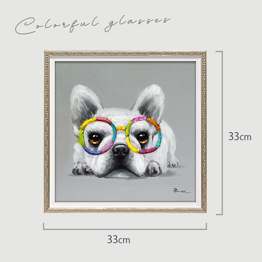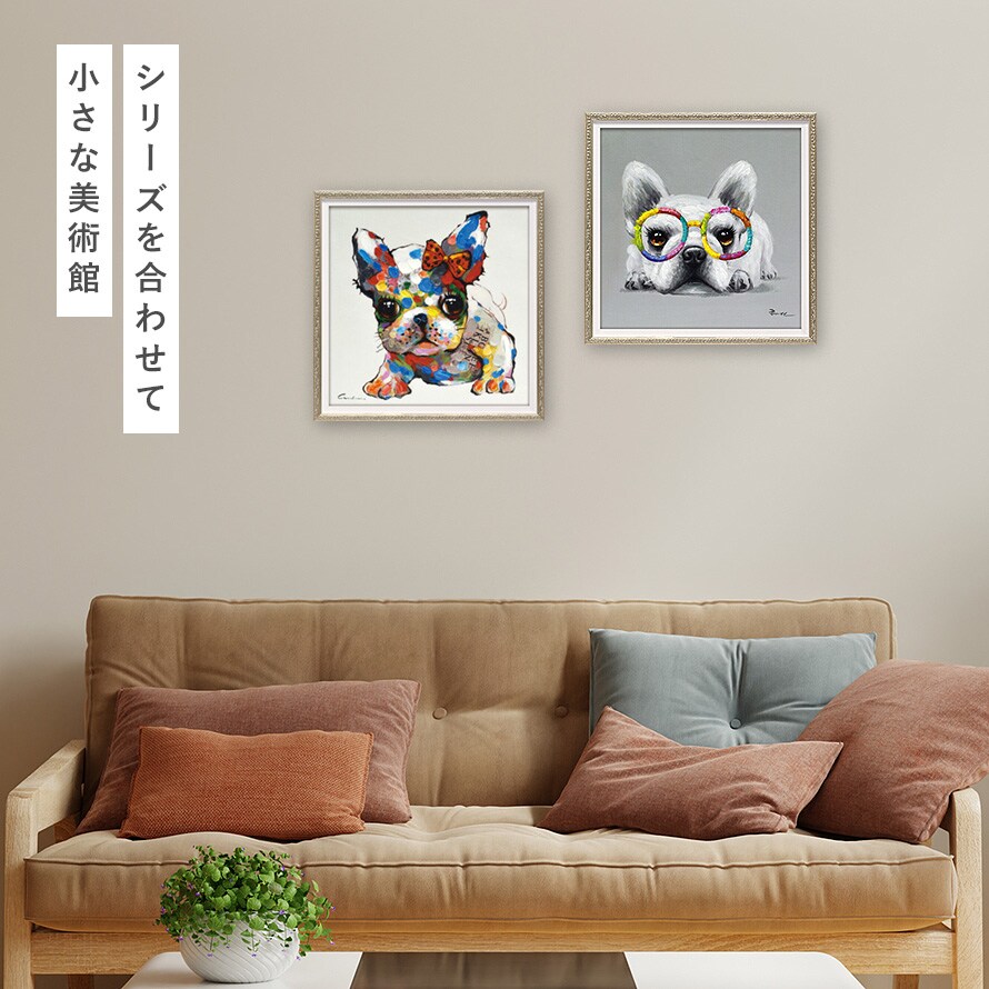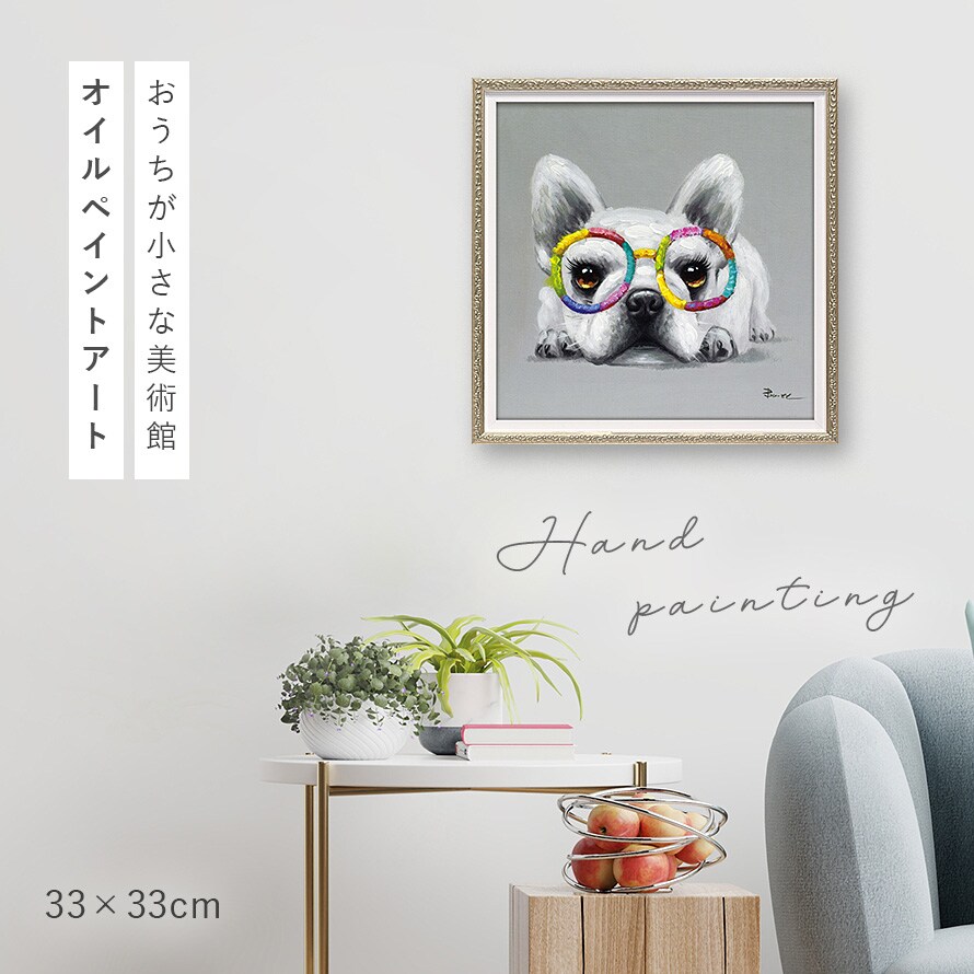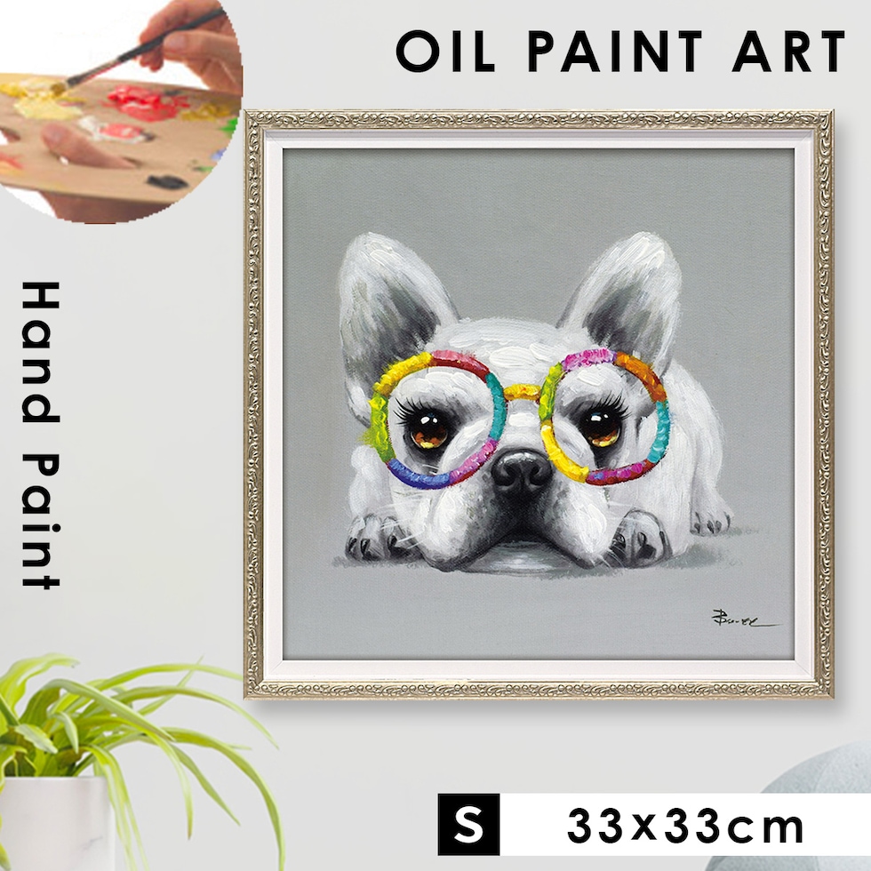 オイルペイント ハンドペイント 33X33cm イヌ ポップ カラフル アート 絵画 壁掛け 油絵 オイルペイント カラフルグラス