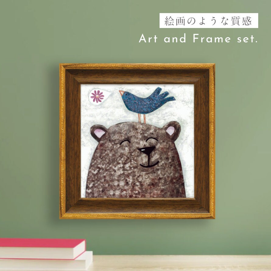 アートパネル アートフレーム モダン 玄関 クマ 動物 絵 かわいい 北欧 壁掛け 卓上 インテリア アート 額入り ゲル加工 ミニゲル アートフレーム ジャネット ネルソン 「ベリーハッピーソング」