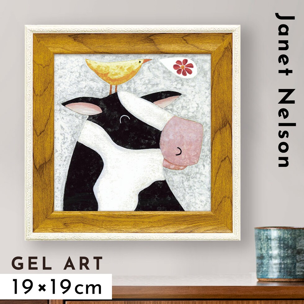 アートパネル アートフレーム モダン 玄関 牛 動物 絵 かわいい 北欧 壁掛け 卓上 インテリア アート 額入り ゲル加工 ミニゲル アートフレーム ジャネット ネルソン 「ムージック マイ イヤー」
