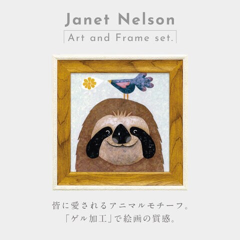 ナマケモノがニコッと微笑んで、頭の上には小鳥が歌を奏でている仕草。キュートなアニマルモチーフ。アメリカの女性作家ジャネット ネルソンのキュートな作品です。北欧インテリアにも合う、モダンなタッチがインテリアを素敵に演出します。