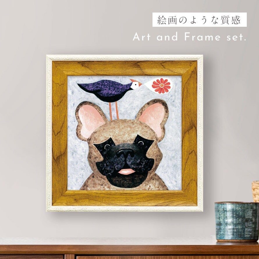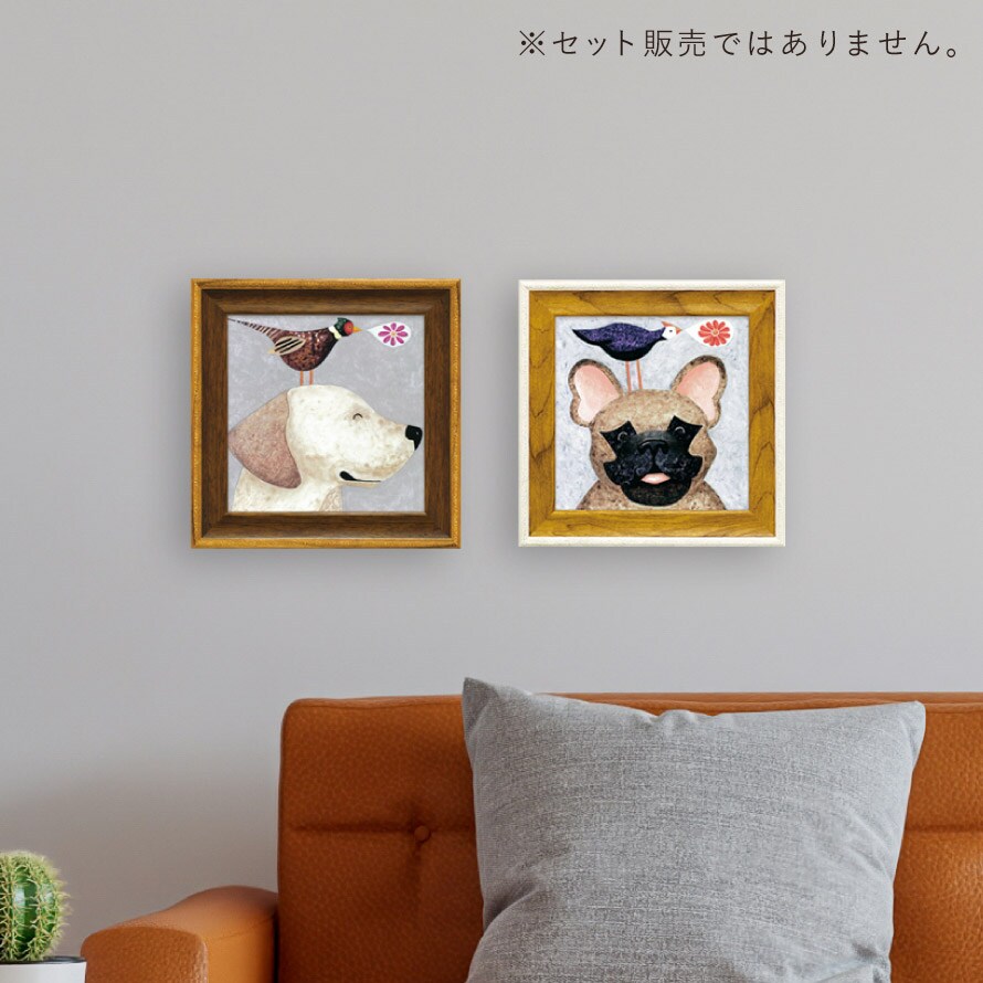 アートパネル アートフレーム モダン 玄関 犬 動物 絵 かわいい 北欧 壁掛け 卓上 インテリア アート 額入り ゲル加工 ミニゲル アートフレーム ジャネット ネルソン「フレンチ フレンド」