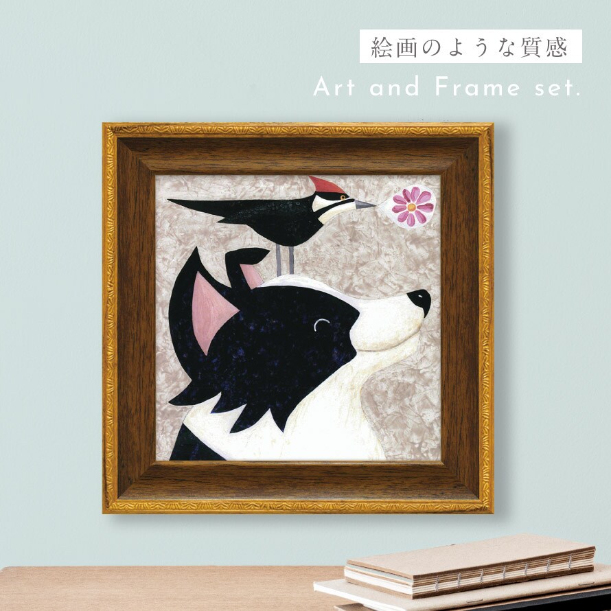 アートパネル アートフレーム モダン 玄関 犬 動物 絵 かわいい 北欧 壁掛け 卓上 インテリア アート 額入り ゲル加工 ミニゲル アートフレーム ジャネット ネルソン「ビー マイ フレンド」
