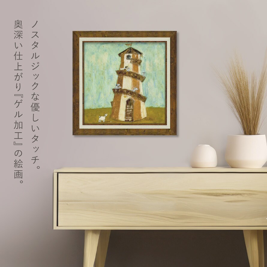 油絵のようなタッチの『ゲル加工』。保護用のガラスやアクリルも不要で、軽くて壁にもかけやすいです。
