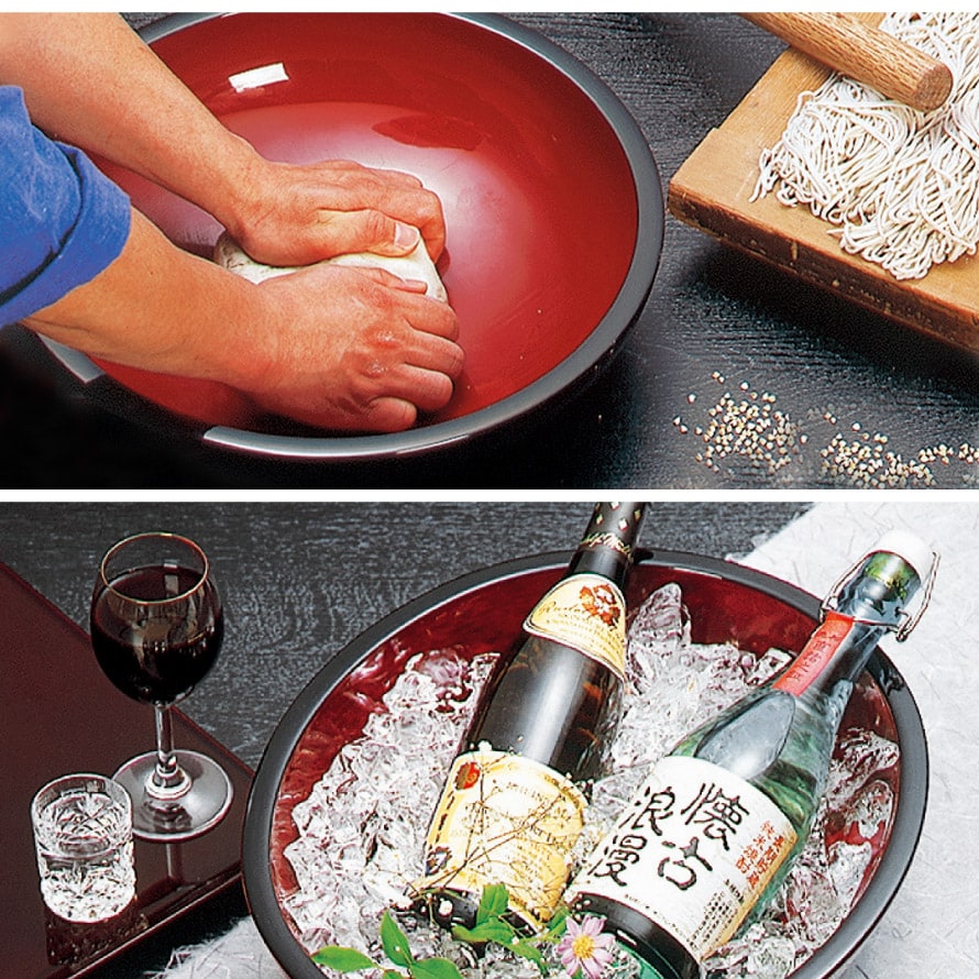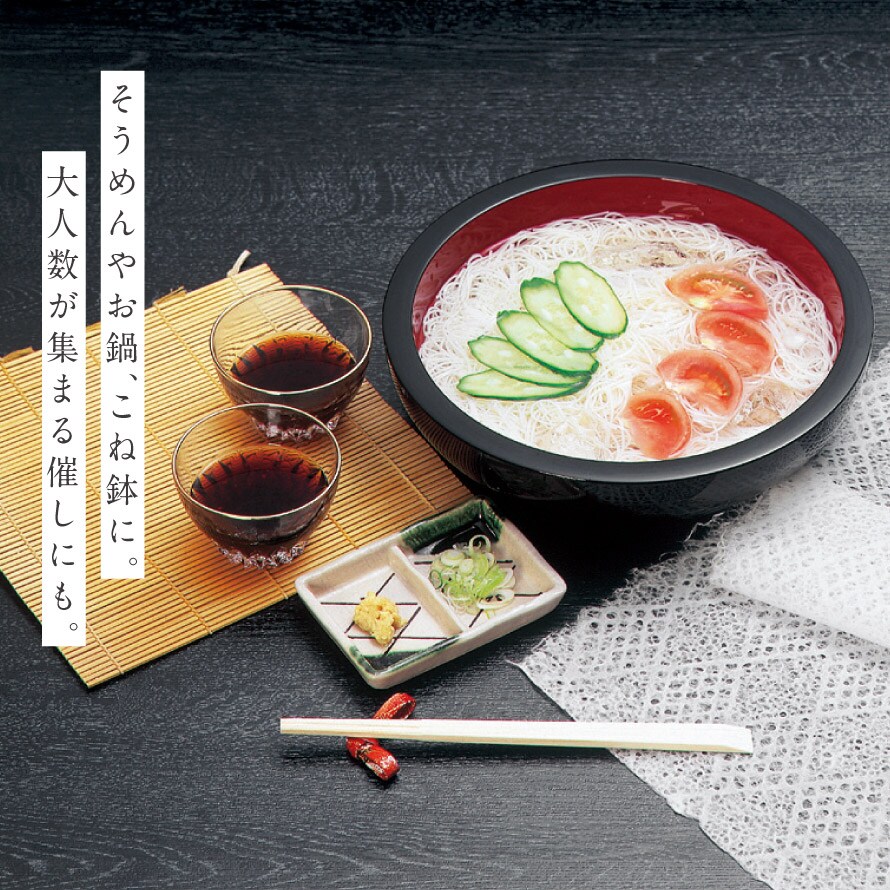 こね鉢に、そうめんやお鍋に。多目的で使用できる便利な山中塗の盛器。