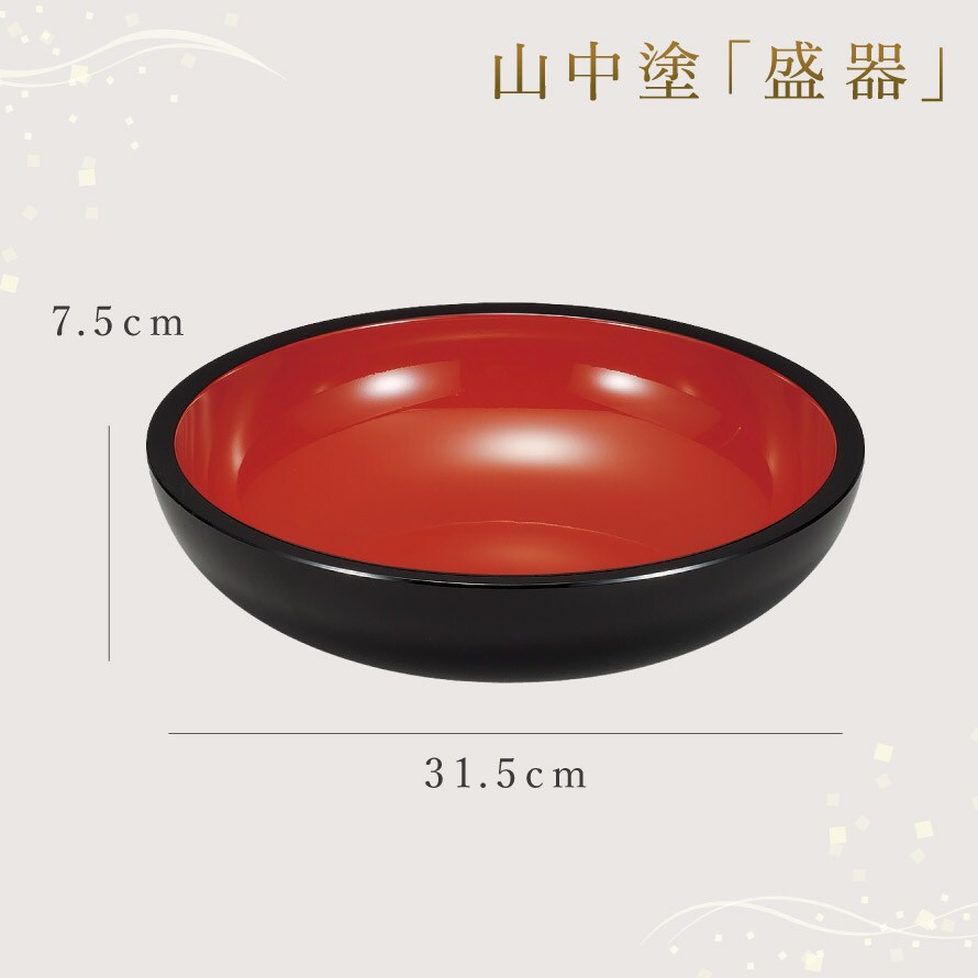 大皿 31.5cm 和食器 山中塗 汁椀 日本製 高級 漆器 食器 10.5盛器 黒内朱 和食 お正月 正月 おせち 迎春 新春 元旦