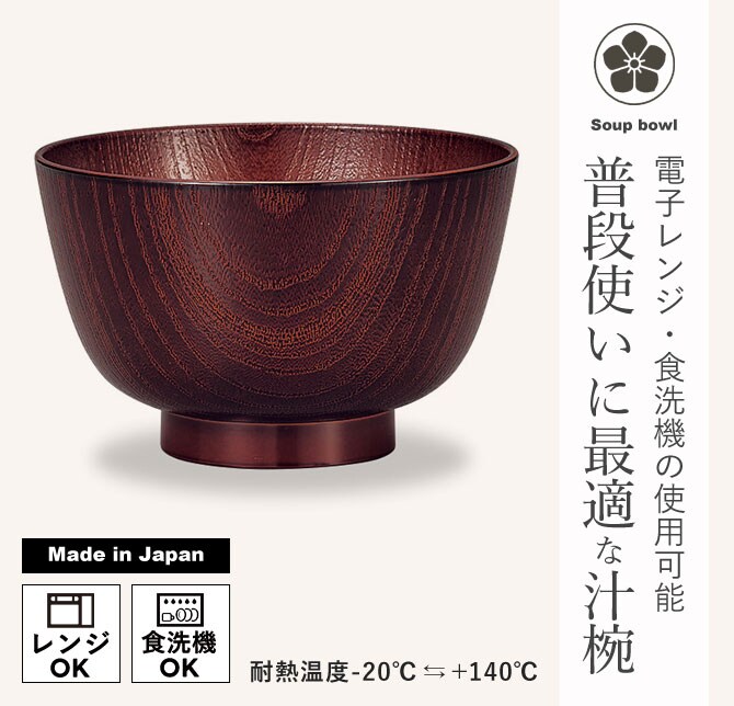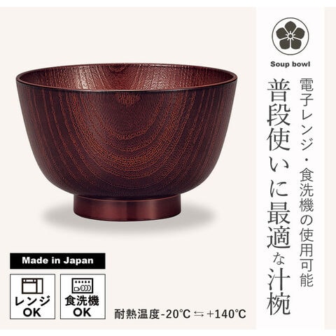 木目調でありながら家庭用電子レンジ・食器洗い乾燥機対応の優れた汁椀です。