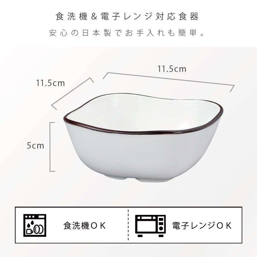 ボウル 11.5cm 小鉢 食器 白 食洗機対応 レンジ 割れない 軽い おしゃれ スタッキング 撥水加工 汚れ 落ちやすい Natule スクエア和洋鉢 ナチュール BPAフリー 割れない食器