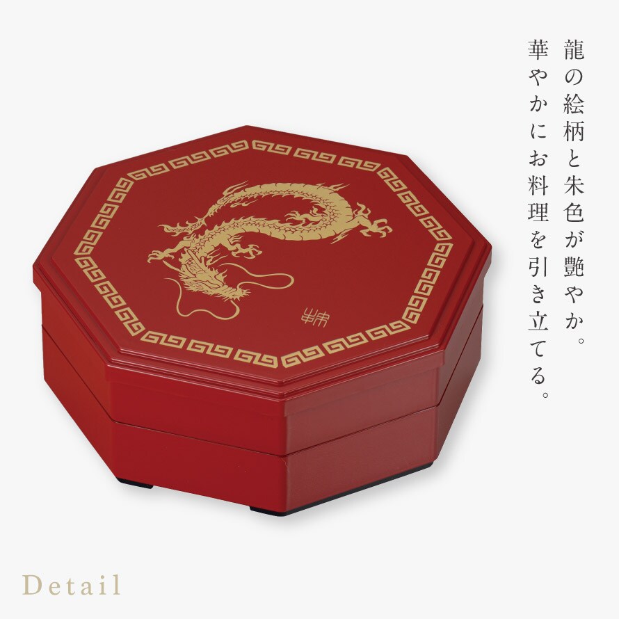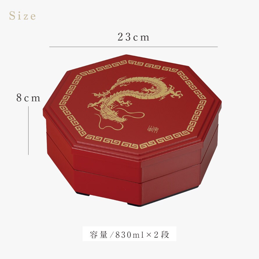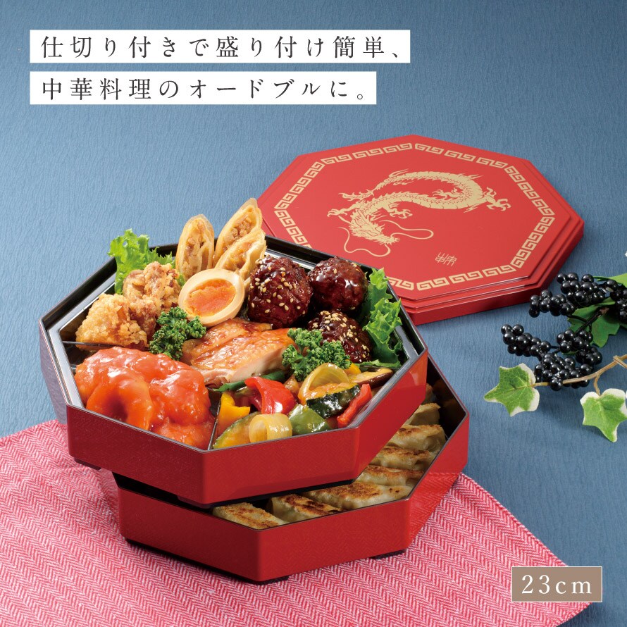 重箱 お重箱 お重 23cm 二段 2段 オードブル 中華 中華料理 八角 おしゃれ 日本製 高級 8.0八角二段オードブル重 中華龍 BPAフリー