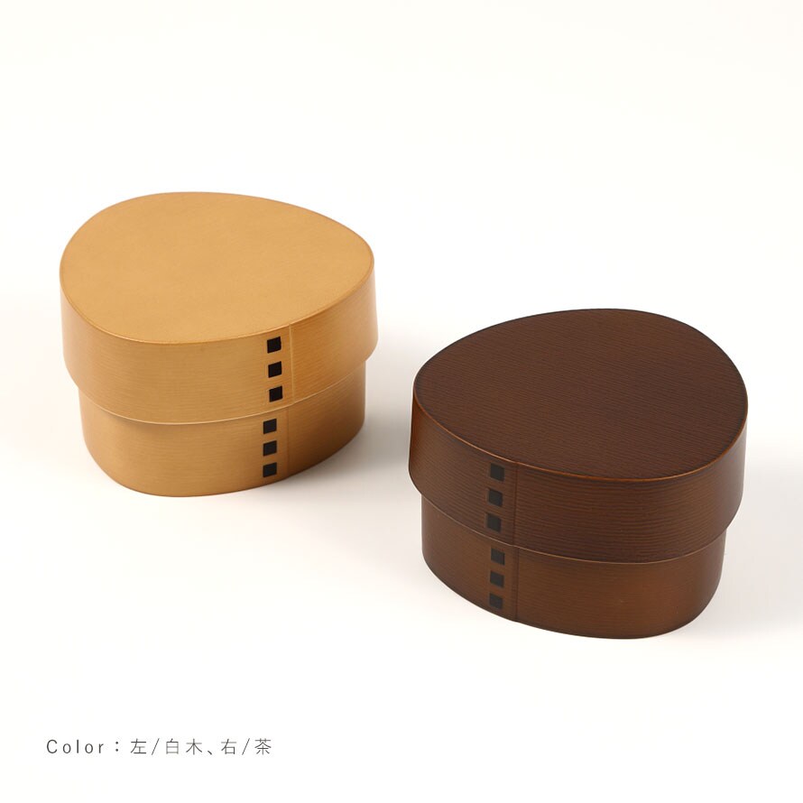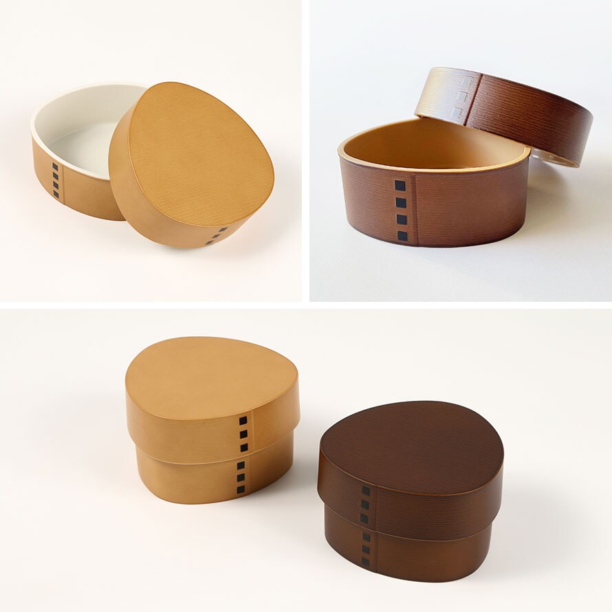 まるで木製の曲げわっぱのような質感に職人の手仕事で仕上げられたおにぎりケース。