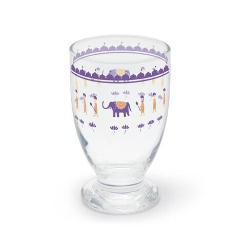 グラス ガラス コップ タンブラー 脚付きグラス ゴブレットグラス おしゃれ かわいい おまち堂 おまち堂のグラス インド カレー ラクダ クジャク ゾウ エキゾチック カレー ほっこり イラスト 透明 クリア 食洗機対応 こども 子供 大人