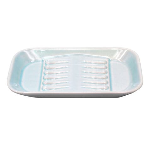 お皿の特殊なスリット形状が余分な油やタレを周りに落としてくれるヘルシーな四角型のタレ皿です。