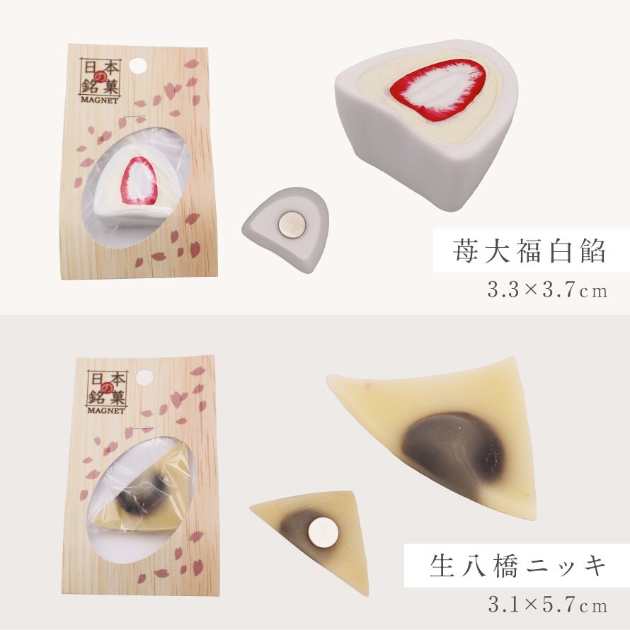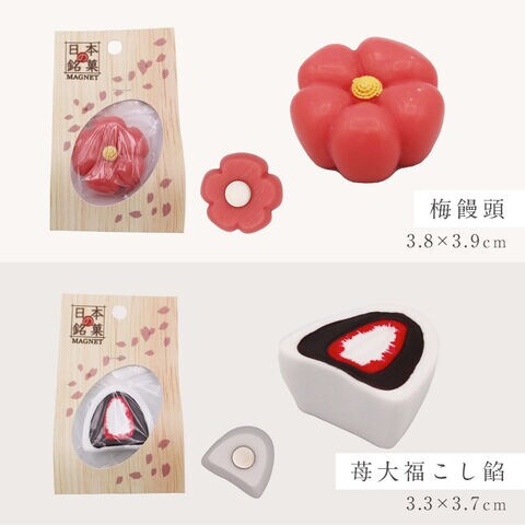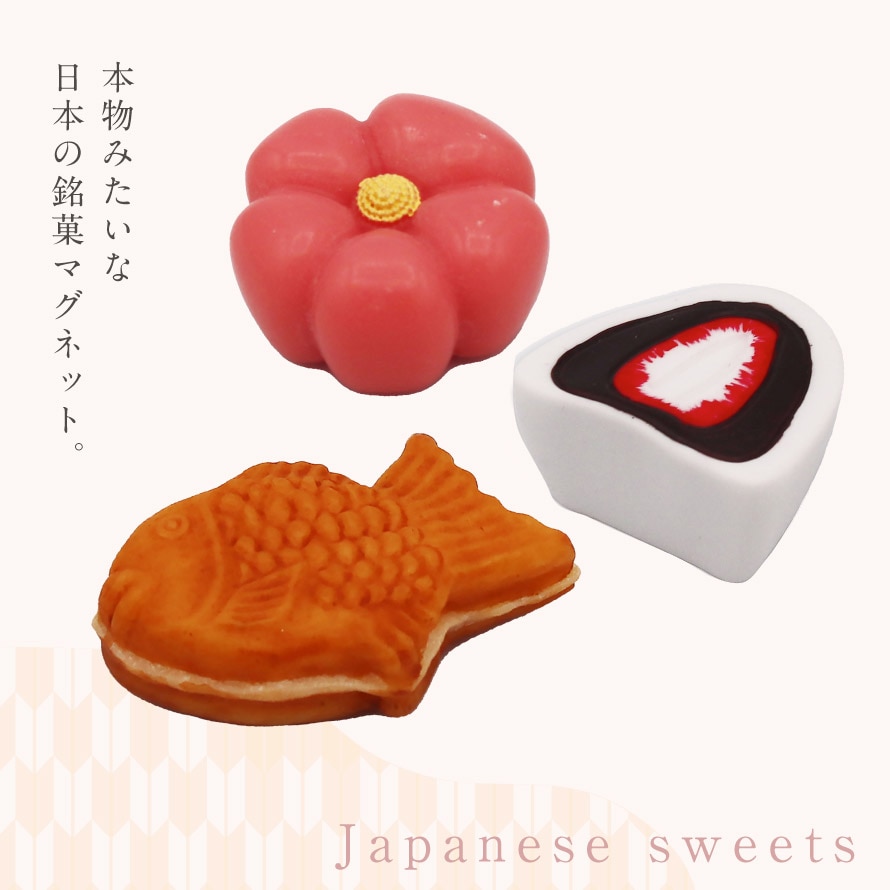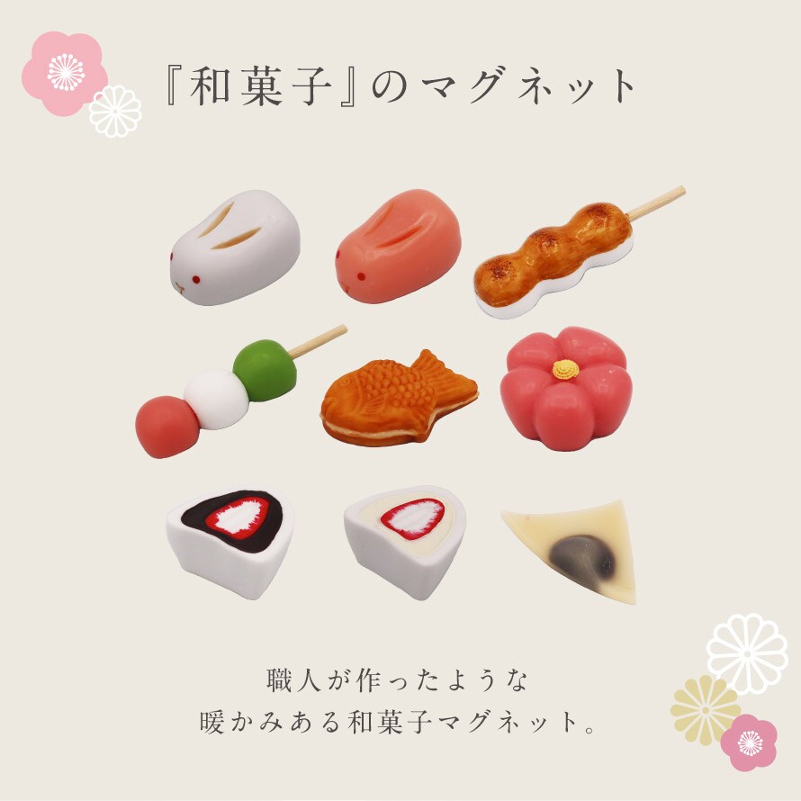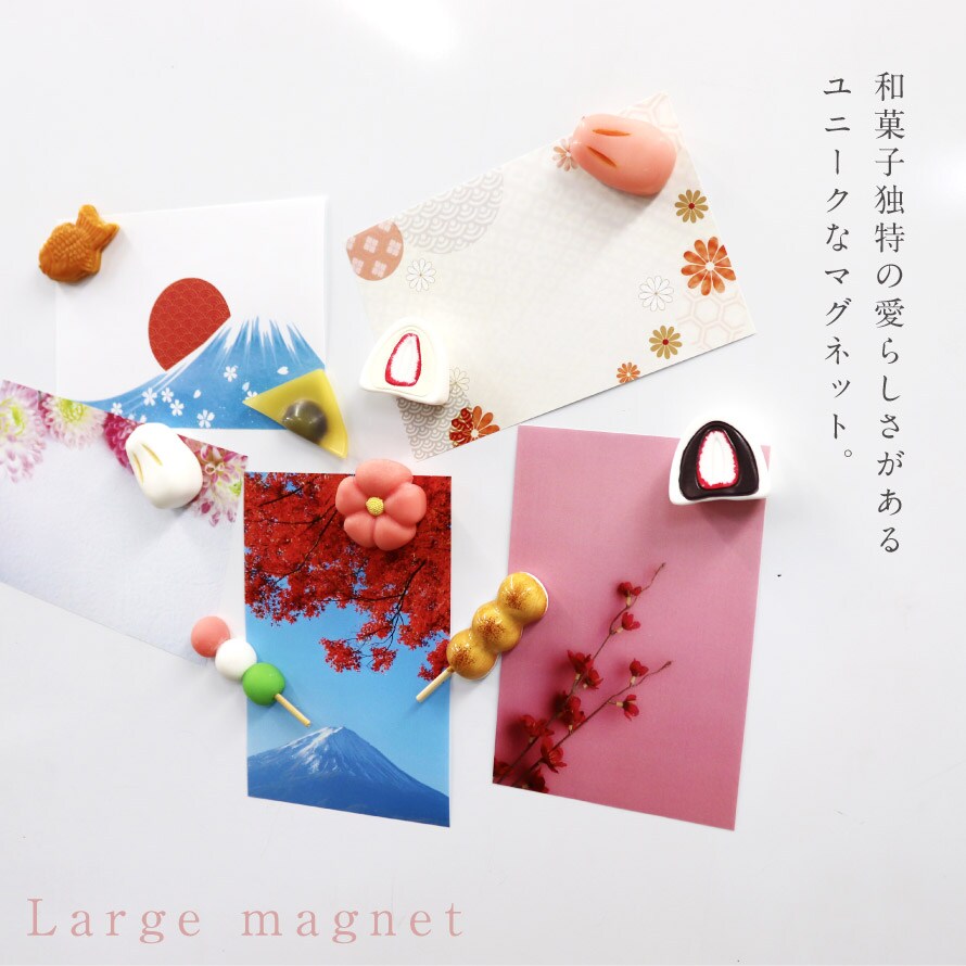 和菓子独特の可愛らしさがあるマグネット。飾りながら実用的に使えるので◎。お家の壁や冷蔵庫につけてもインパクト大。ほっこりした気持ちになります。