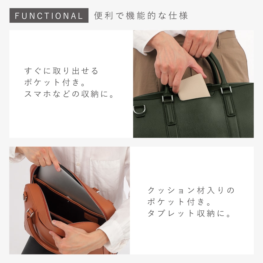 ビジネス使いは勿論、普段使いも出来るレザーのブリーフケース。