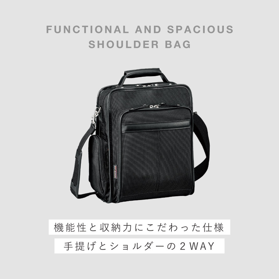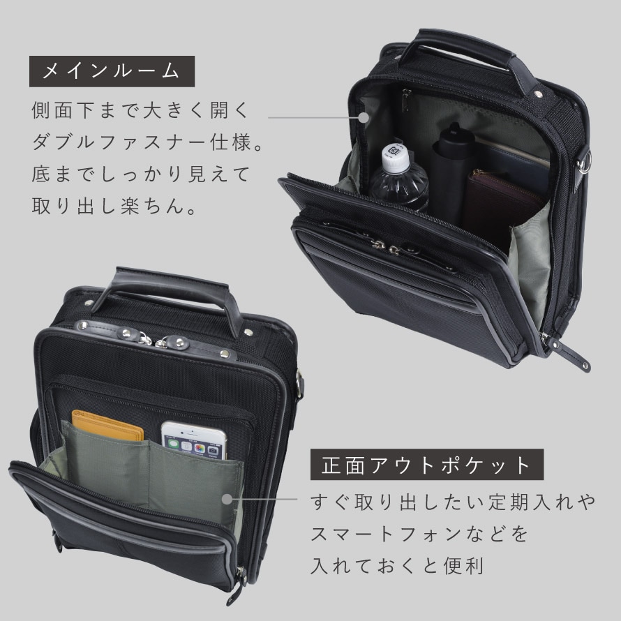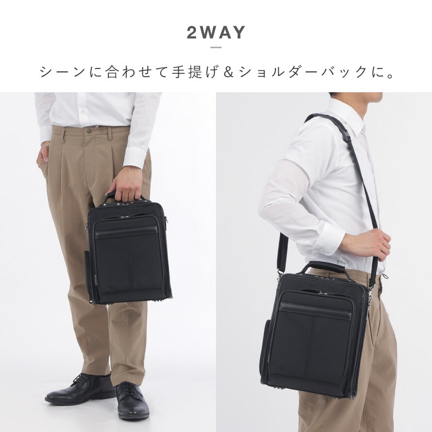 コンパクトなのに大容量。機能性に優れたビジネスバッグ。お好みに合わせて、手提げとショルダーバッグにもなる2Way仕様。