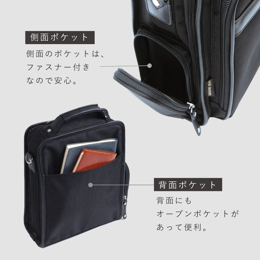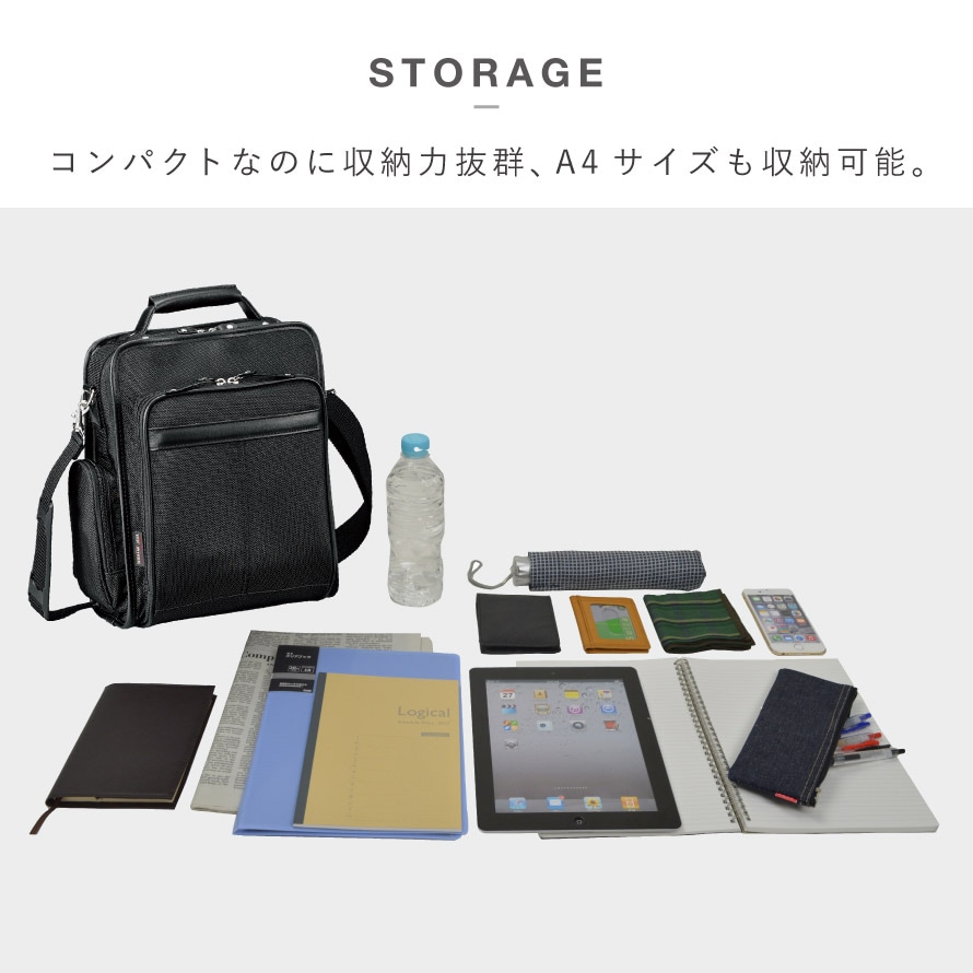 A4サイズ対応。ビジネスから休日の外出まで必要な荷物が入ります。