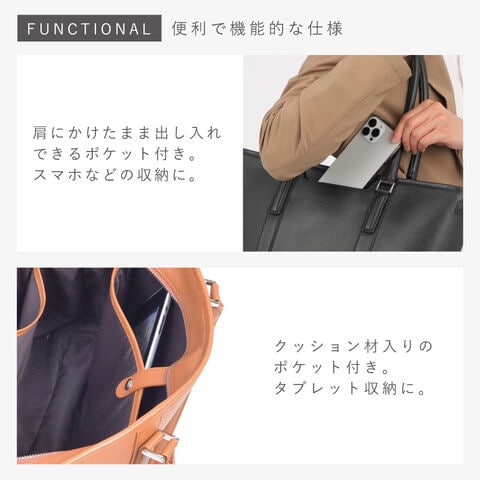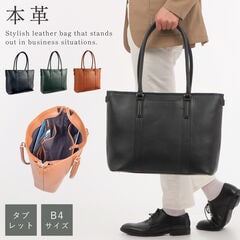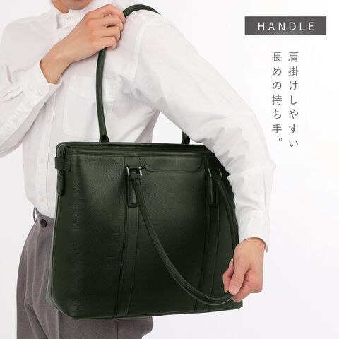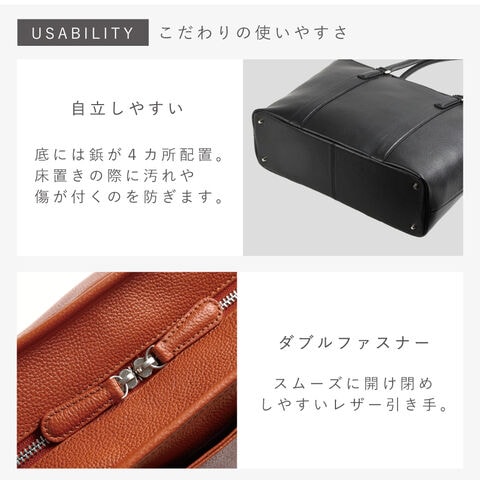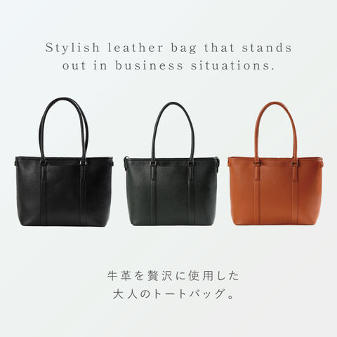 ビジネス使いは勿論、普段使いも出来るレザートートバッグ。