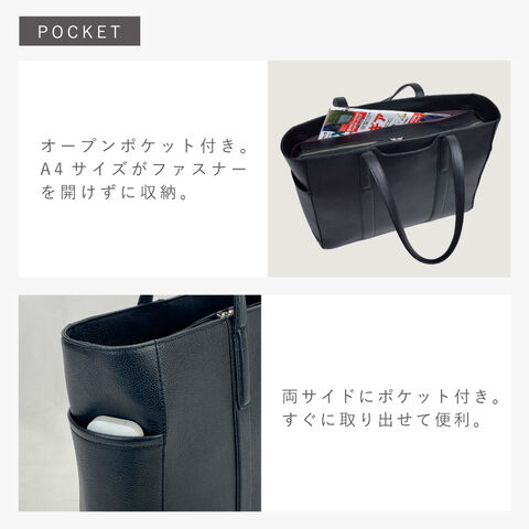 ビジネス使いは勿論、普段使いも出来るレザートートバッグ。