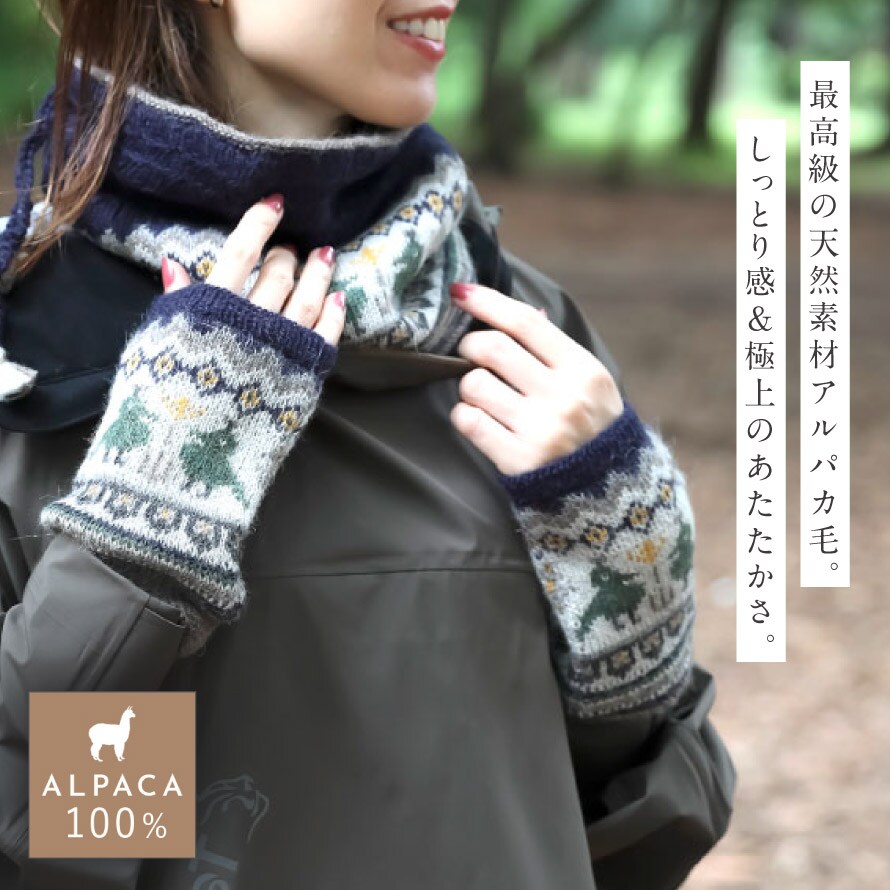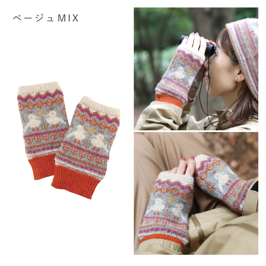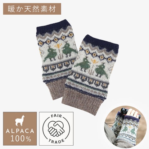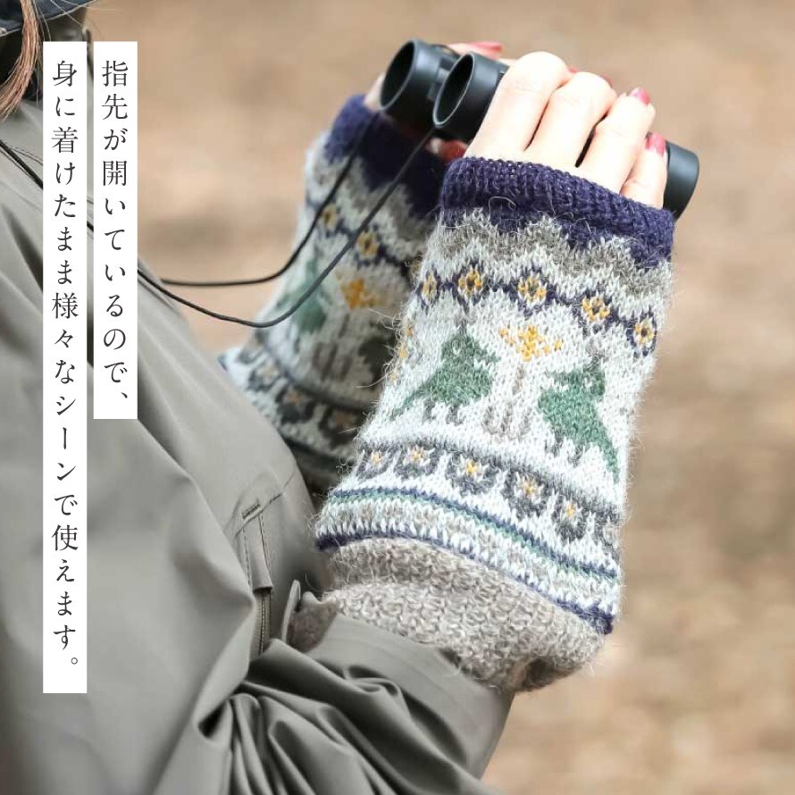 リストウォーマー アルパカ 100% レディース 手首ウォーマー 温める グッズ 女性 プレゼント 冬 フェアトレード 第三世界ショップ アルパカ100% リストウォーマー鳥のダンス