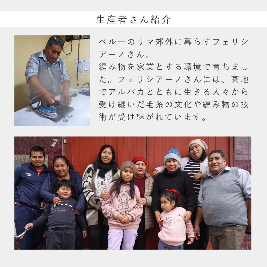 フェリシアーノさんたちと一緒に物作りをすることは、ペルーの子供たちや次の世代の編み手さんに手編みの技術を教え、守ることにつながると考えています。