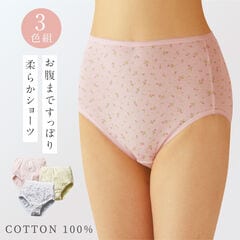 綿100%でふわりと優しく包み込んでくれる、深ばきタイプのドット柄ショーツ。