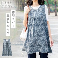 チュニック チュニックエプロン ポケット付き 花柄 春 夏 秋 シワにならない ロング丈 体型カバー ストレッチ 軽い 大人可愛い チュニックワンピース 50代 60代 70代 80代 ミセス 薄手 大きいサイズ 花柄フレアーチュニック さらさら ギフト 誕生日 コンパクト