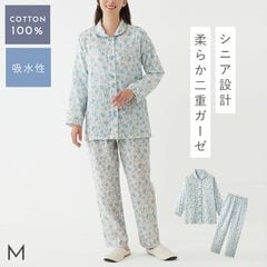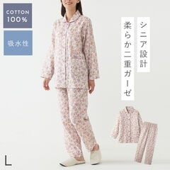 パジャマ ガーゼ レディース 綿100% 敬老の日 ギフト プレゼント ゆったり思いやりパジャマ ルームウェア コットン100% 前開き 長袖 花柄 大きめボタン シニア 高齢者 贈り物 ガーゼパジャマ 着やすいパジャマ 誕生日 母親 母 60代 70代 80代 入院用 シニア 女性
