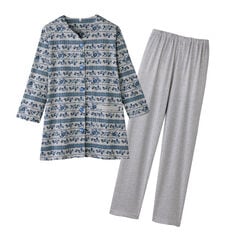 着脱しやすい前開き+大きめボタンで、手元の不自由さにも配慮。ボタンの取り外ししやすく着脱がスムーズに行え、介護用や入院用のパジャマとしてもも重宝します。さらに右ポケット付きで、ちょっとした小物を入れるにも便利。