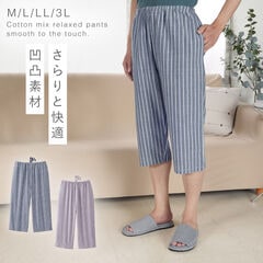 総ゴム仕様のウエストでお家でくつろぐ時も楽ちん。便利なベルト通し付きです。
