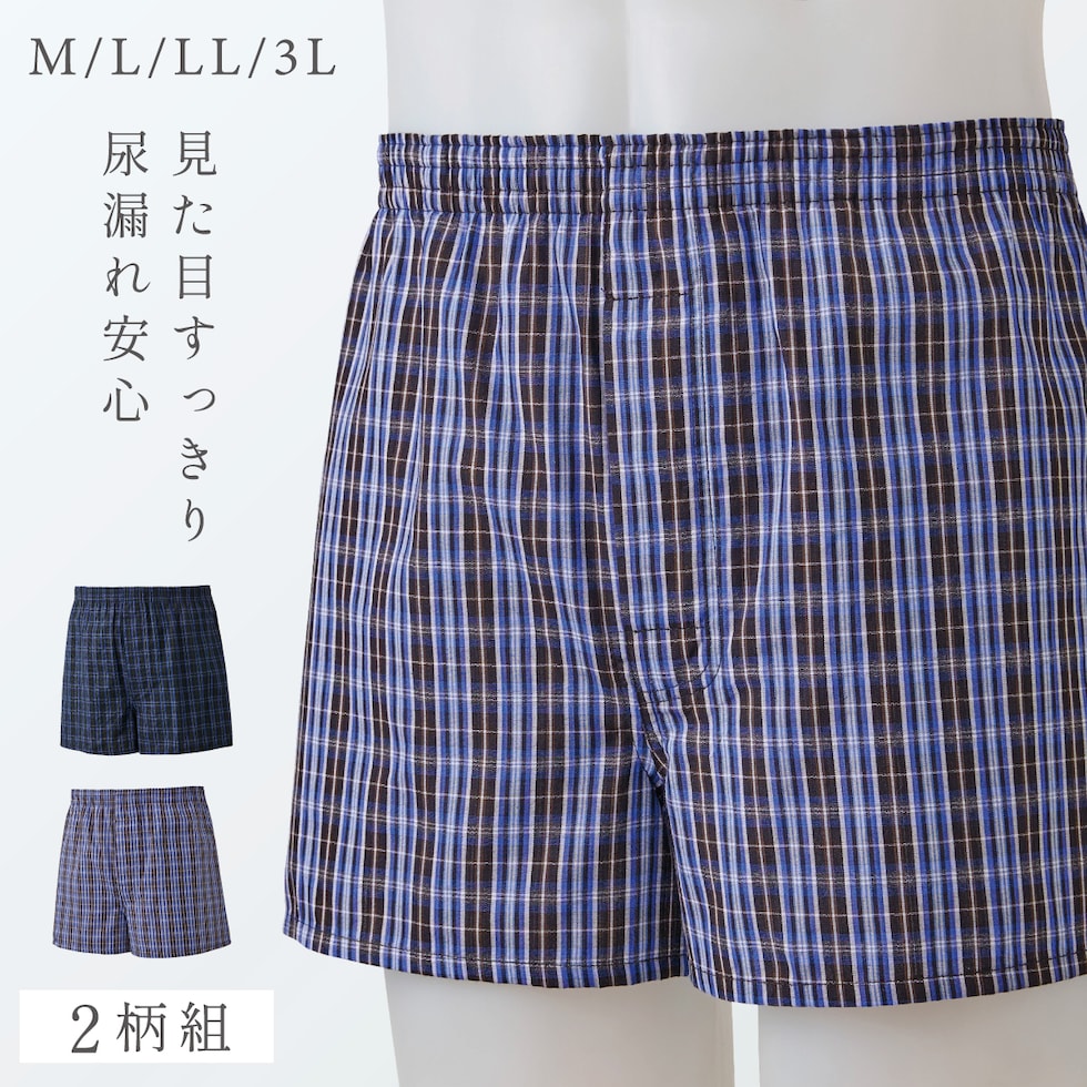 ちょい漏れ トランクス 尿漏れパンツ メンズ 2枚組 男性用 尿漏れ パンツ 失禁パンツ 綿100%安心メンズトランクス 2柄組 M L LL 3L 大きいサイズ ゆったり シニア 紳士