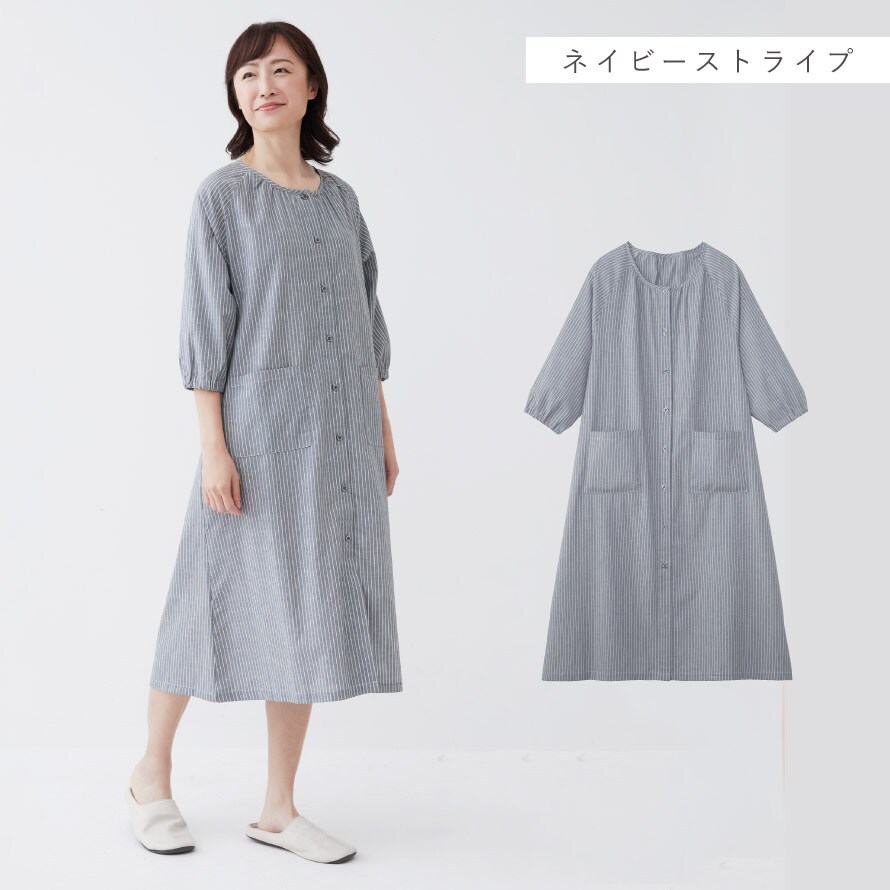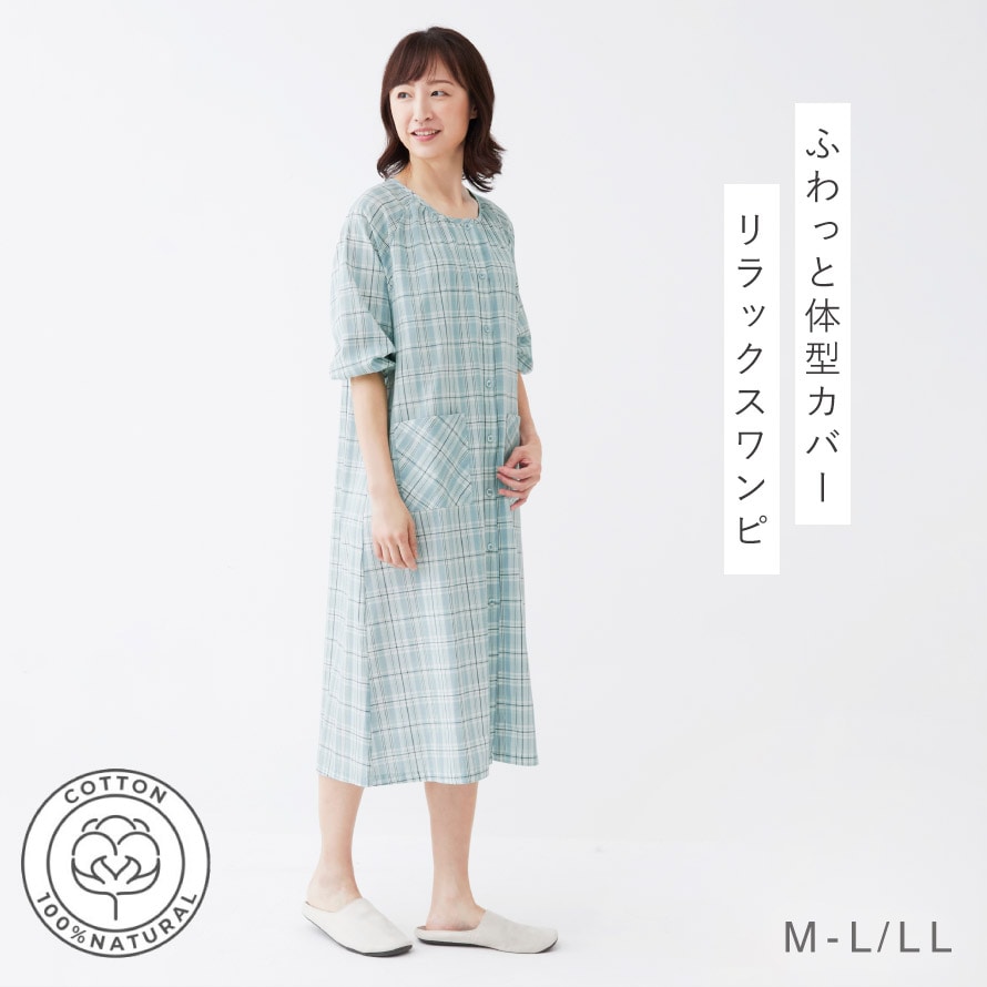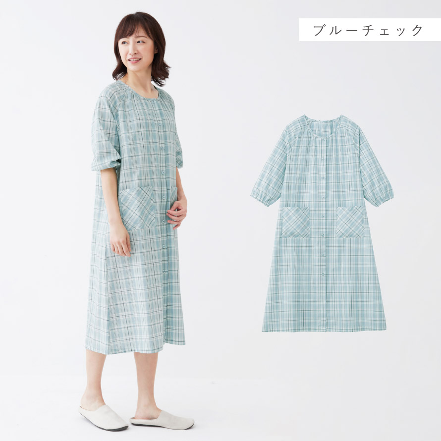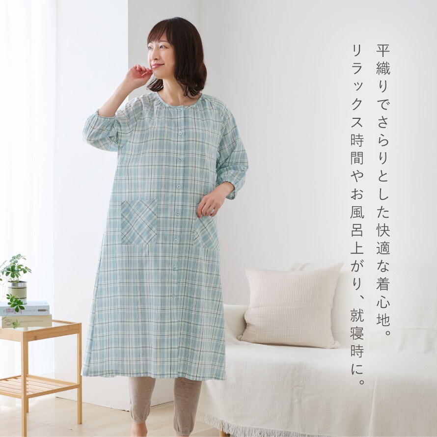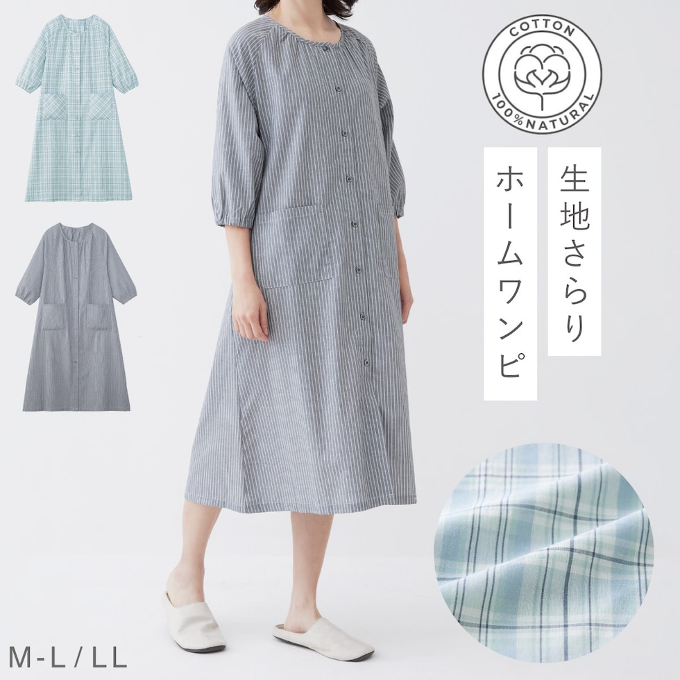 ルームワンピース レディース 夏 綿100% パジャマ ガーゼ 七分袖 ルームウェア 涼しい 部屋着 綿 コットン 敏感肌 乾燥肌 綿100%さらっと楽ちんホームワンピ M L LL 大きいサイズ ゆったり ミセス 婦人