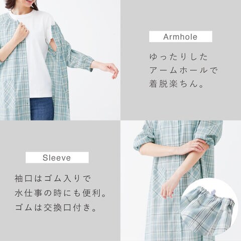 袖口はゴム入り仕様で水仕事の時にも便利。ゴムは交換口付きです。