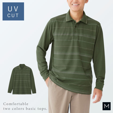 左胸ポケット付。前開き部分/ボタン3個。紫外線遮蔽率/ネイビー95%・オリーブ96%