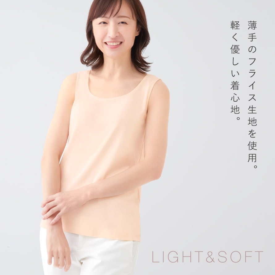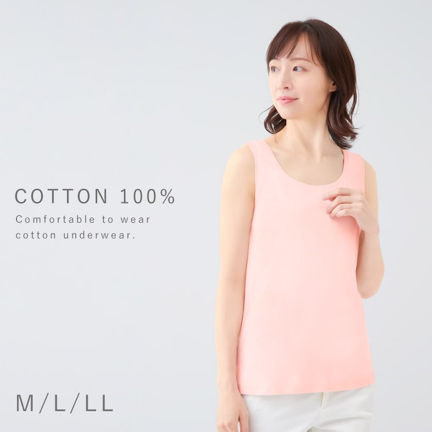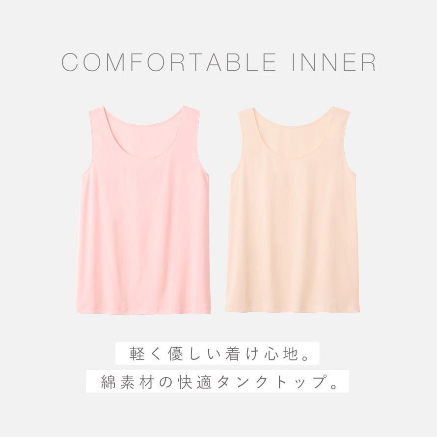 綿100%でふんわり優しく包み込む、着心地良いタンクトップ。