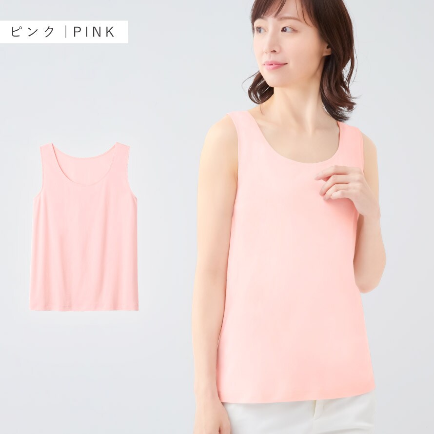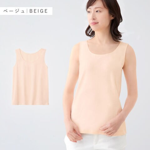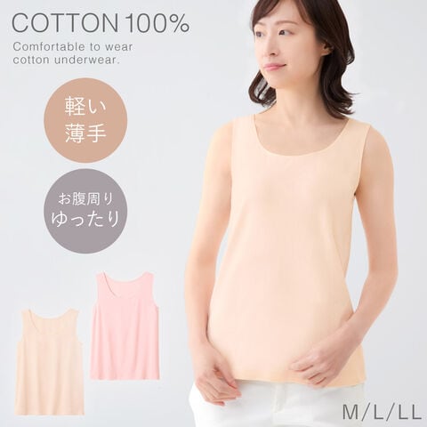 タンクトップ 綿100 インナー レディース 衿ぐり 広め ゆったり ベージュ ピンク 大きいサイズ 綿100%快適タンクトップ