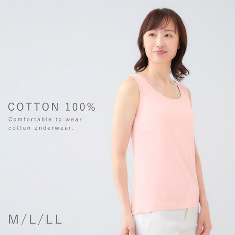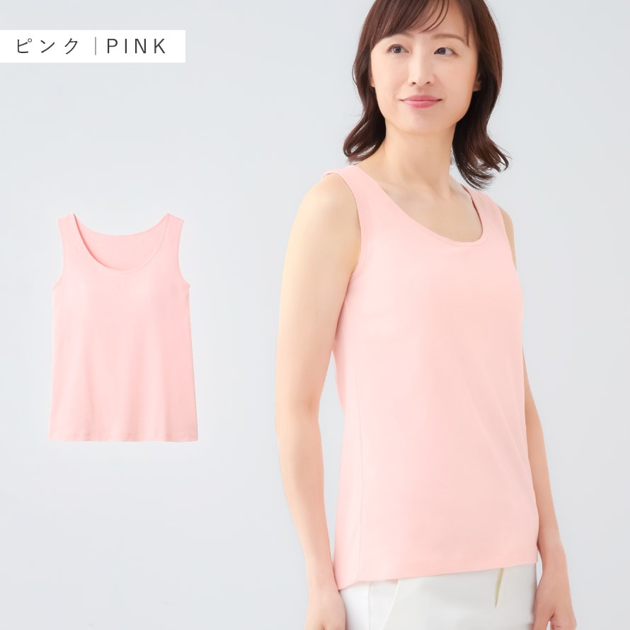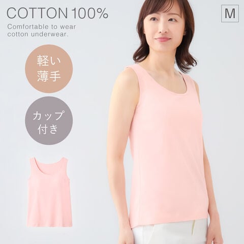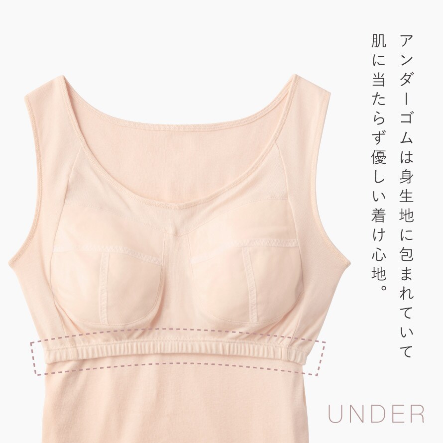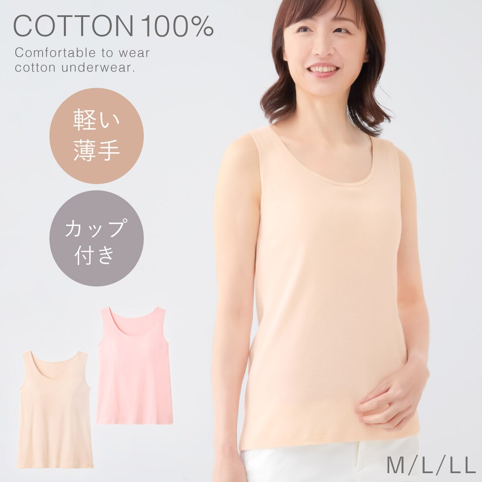 カップ付きタンクトップ 綿100 カップ付きインナー タンクトップ 衿ぐり 広め インナー レディース ゆったり ベージュ ピンク 大きいサイズ 綿100%快適ブラタンクトップ