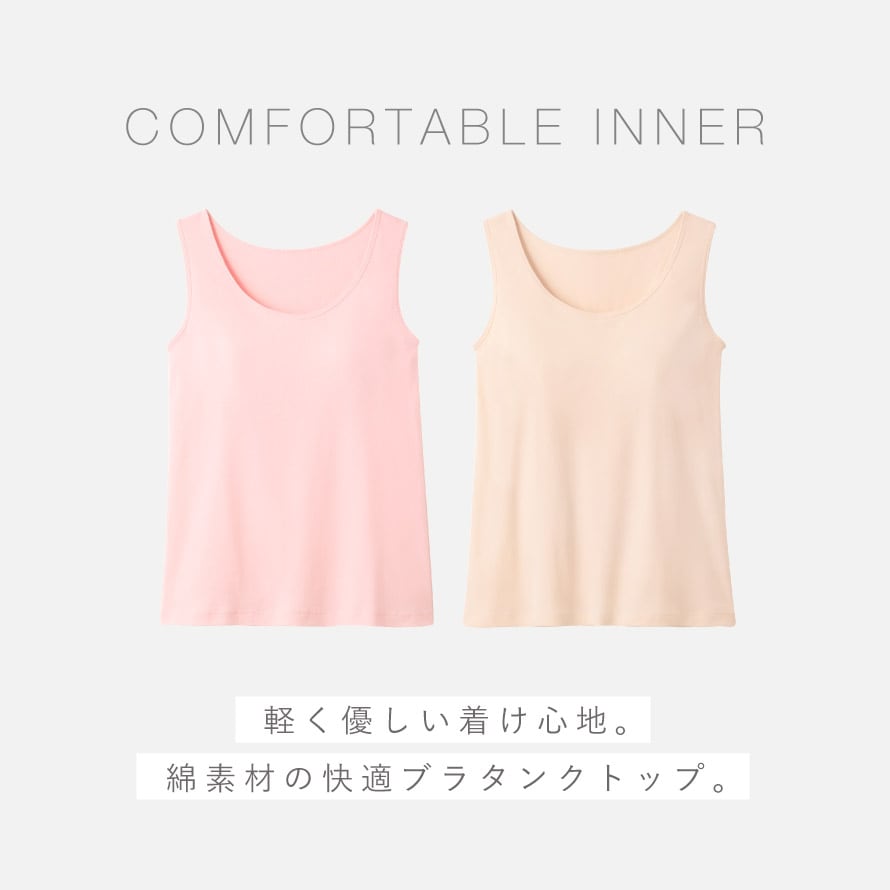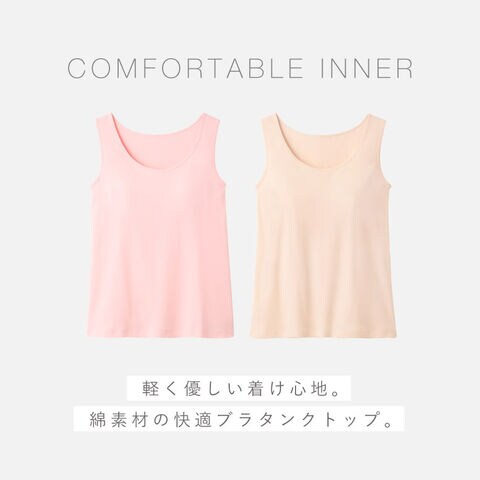 綿100%でふんわり優しく包み込む、着心地良いブラタンクトップ。