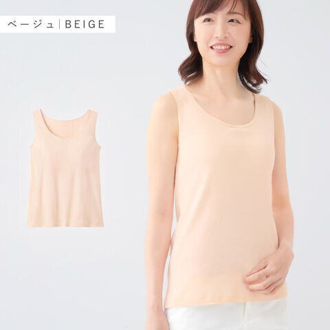 カップ付きタンクトップ 綿100 カップ付きインナー タンクトップ 衿ぐり 広め インナー レディース ゆったり ベージュ ピンク 大きいサイズ 綿100%快適ブラタンクトップのレビュー