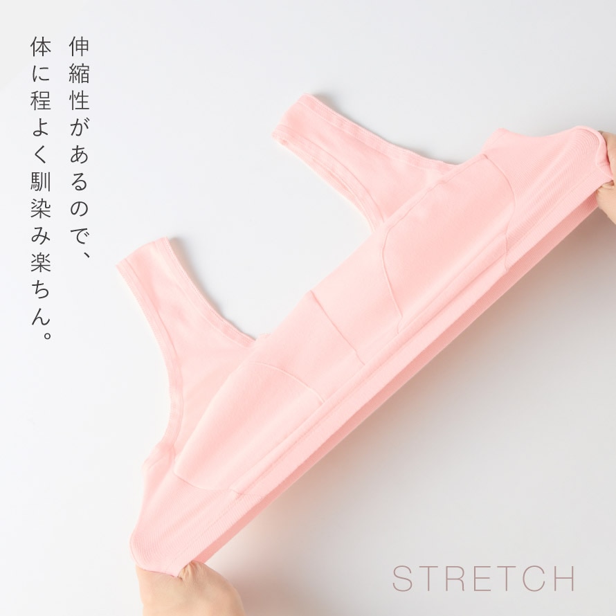 上からかぶるだけ。ノンワイヤーのリラックスブラ。ノーブラのような着用感でブラジャーは苦しいという方にもおすすめです。