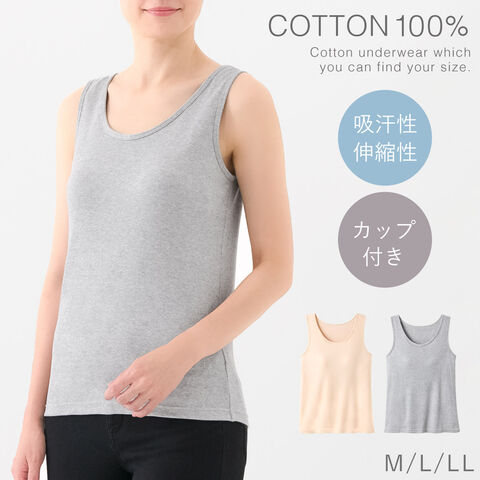 きっと見つかる私のサイズ。豊富なサイズの綿100%ブラタンクトップ。