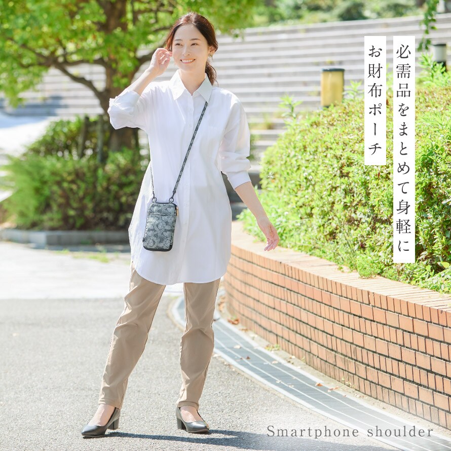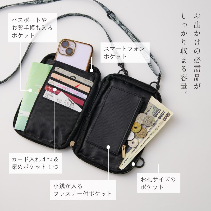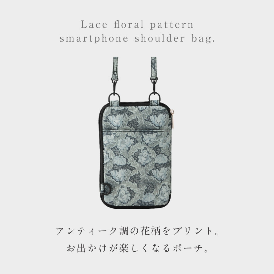 お財布ポーチ ショルダー 財布 一体型 カード 大容量 軽量 スマホ ショルダーバッグ アンティーク花柄のスマホも入るお財布ポーチ