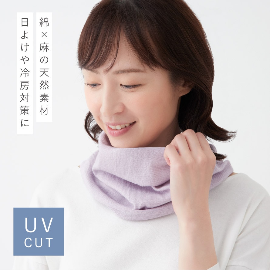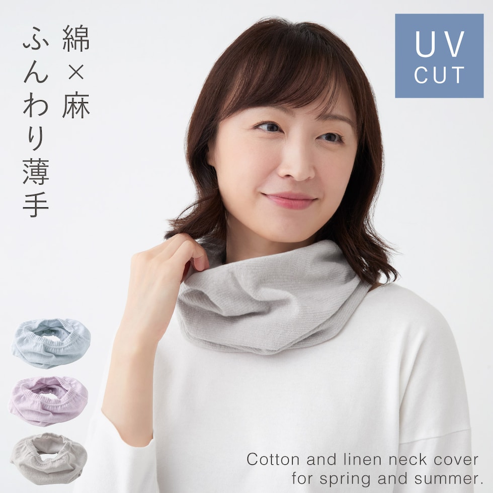 ネックカバー uvカット 首 uv ネック カバー 薄手 綿 麻 春夏 レディース シワ隠し スッポリかぶれるさらさら綿麻UVネックカバー